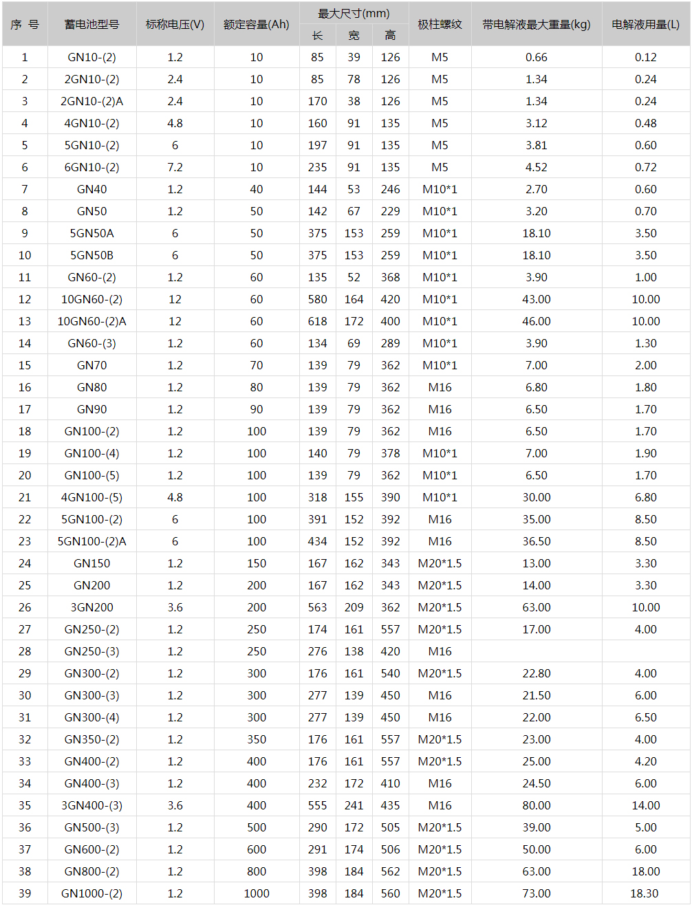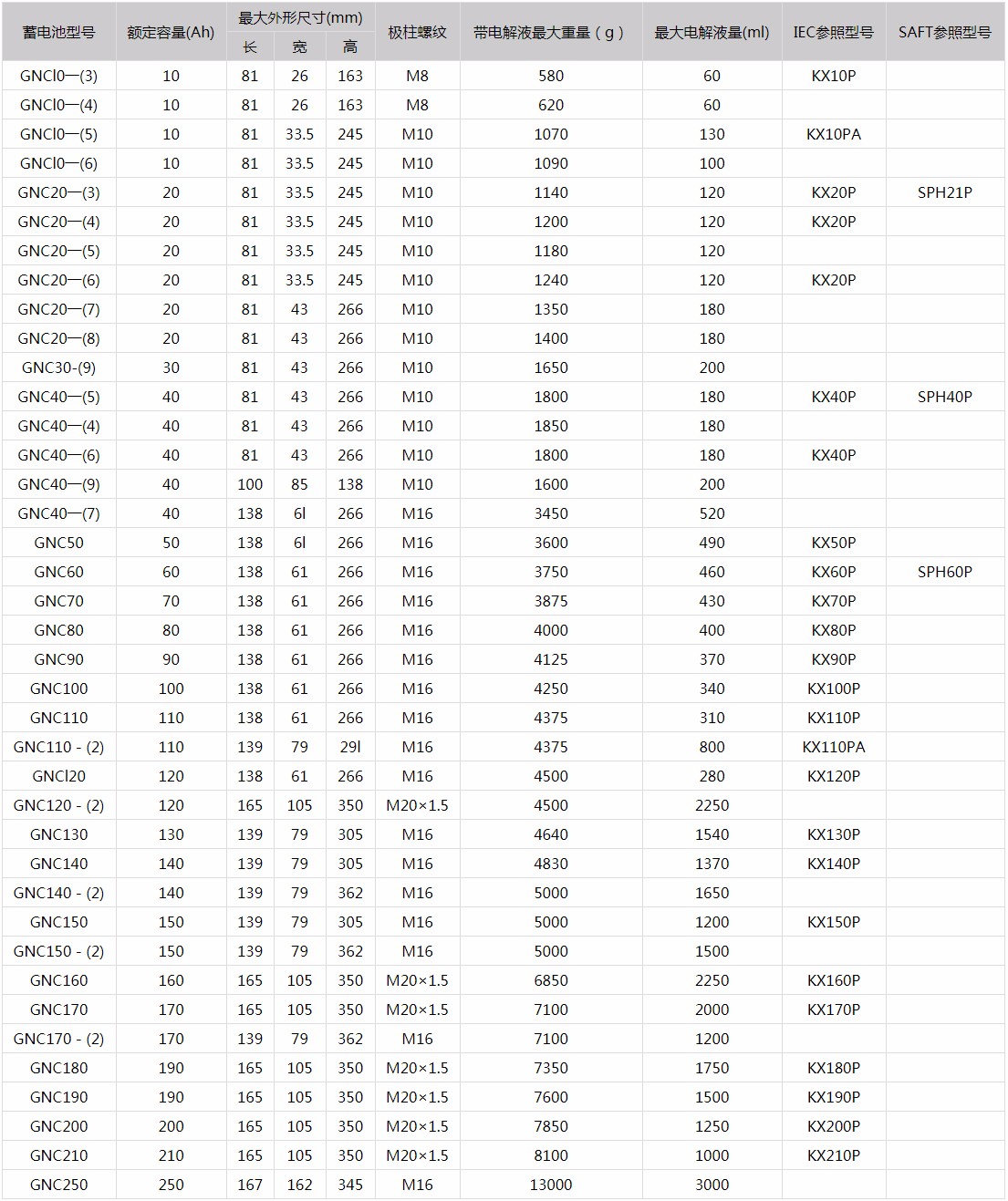 超高倍率碱性蓄电池外形尺寸等参数